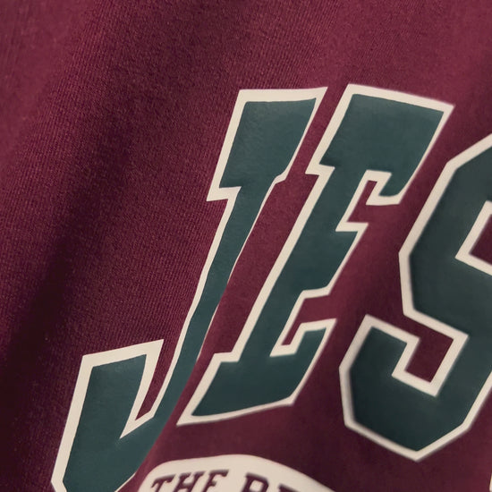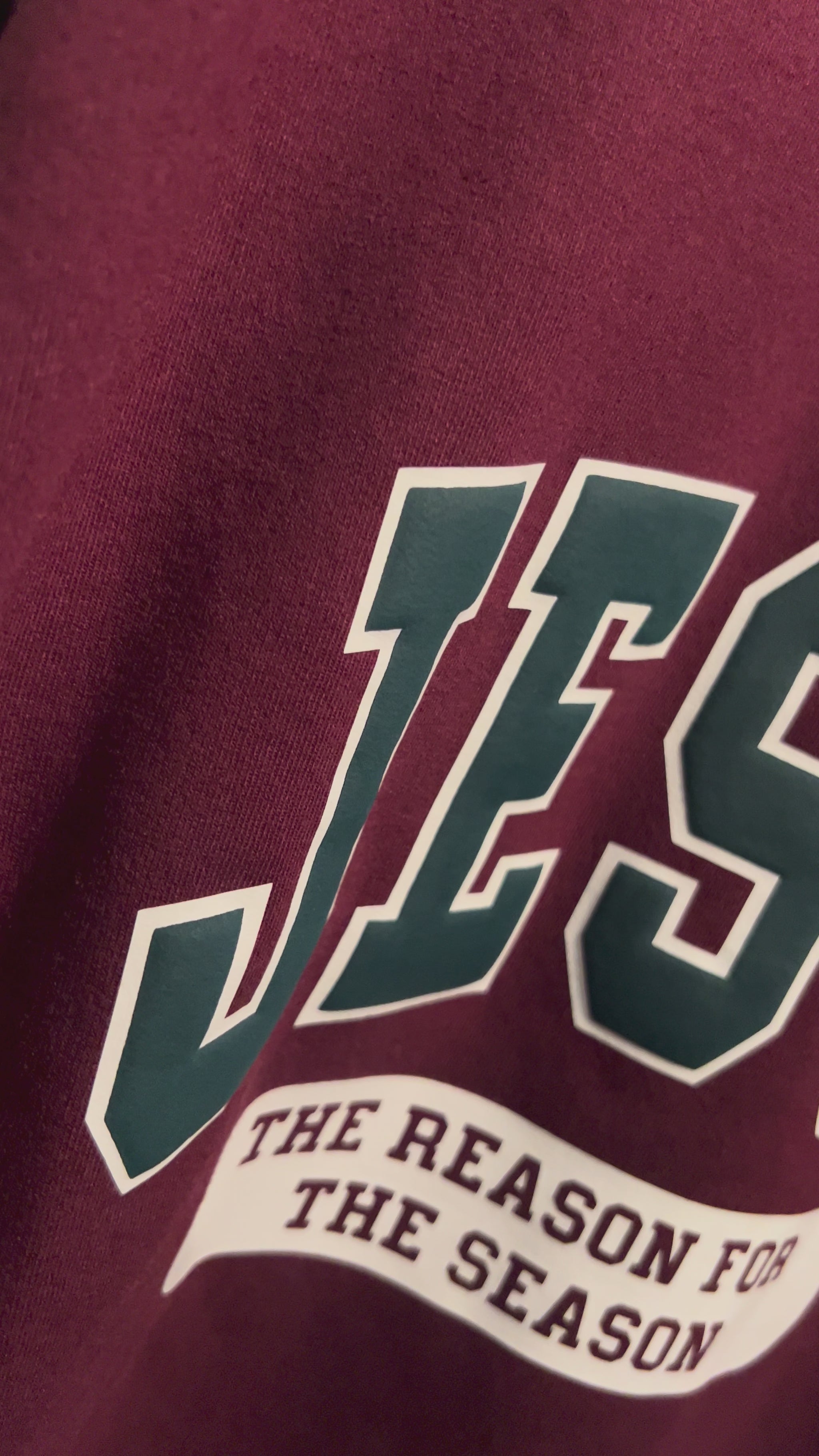 Celebrate the true meaning of the season with this striking maroon sweater, beautifully accented with green puff vinyl lettering. The rich, deep maroon provides a classic holiday backdrop, while the dimensional green details add visual interest and a festive touch. Perfect for expressing your faith during Christmas gatherings, this comfortable sweater combines meaningful messaging with quality craftsmanship. Whether you're attending church services, family celebrations, or casual outings, this piece lets your beliefs shine through in style. Make a statement this season with a sweater that honors what matters most.